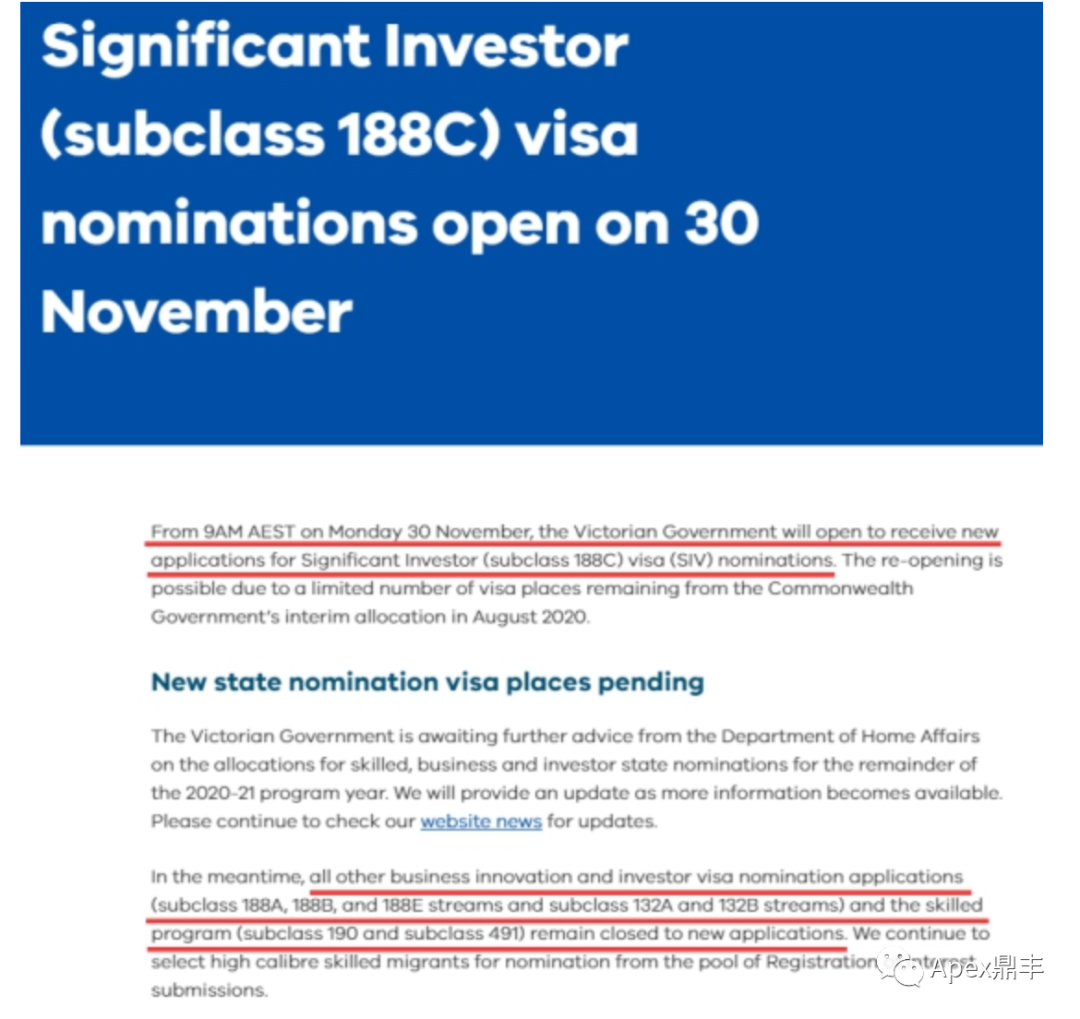 维州政府发布通知:将于11月30日(星期一)上午9点开放188C重大投资者签证州担保申请!