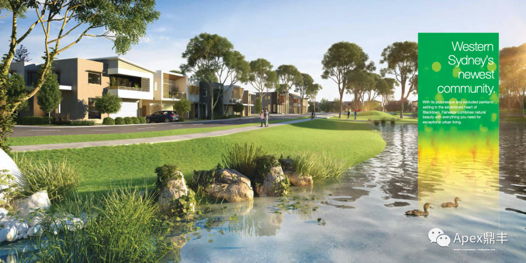 项目位于悉尼最具多元文化的地区Blacktown中心地带, Frasers着手打造了人工湖、公园与低密度住宅群相融合的自然生态环境,被誉为西悉尼模范住宅区。