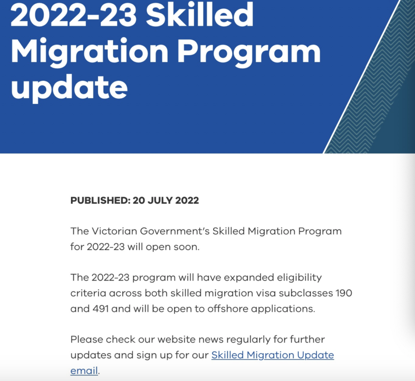 2022-23财年维多利亚政府的移民计划即将开启。2022-23财年,维州将拓宽190和491技术移民签证的资格标准,并将对海外申请开放。